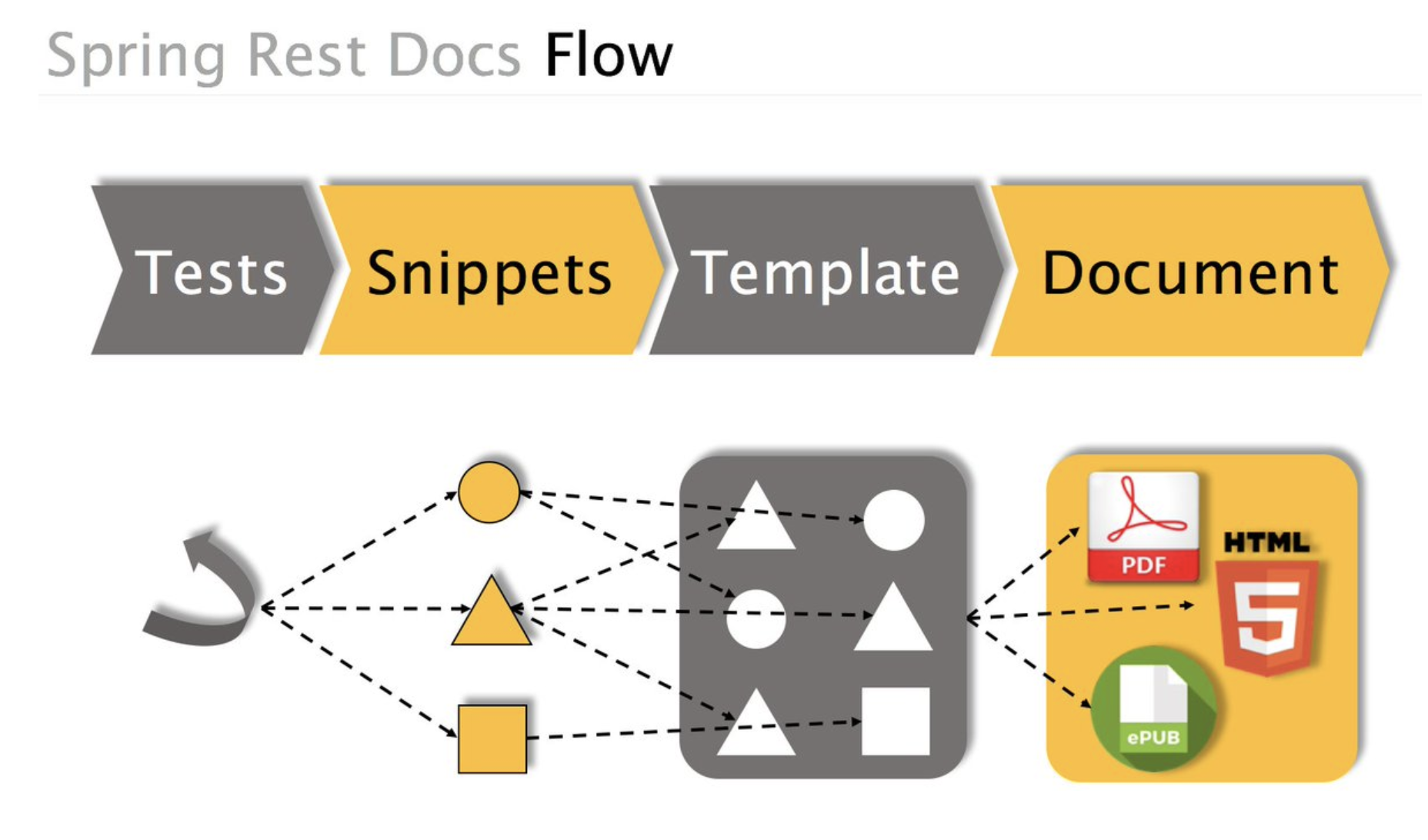 테스트코드에 문서에 기록할 내용들을 명시하여 추후 테스트를 실행했을 때 명시한 부분에 해당하는 snippets가 생성되도록 해줍니다.