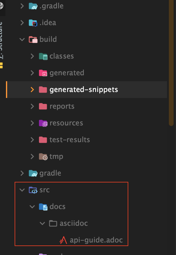 Src > docs > asciidoc 경로에 api-guide.adoc 파일을 생성합니다.
