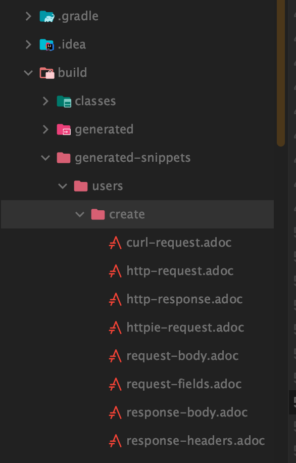 1. 테스트 코드를 실행하면 snippets라는 문서에 사용될 조각들이 생성된다.