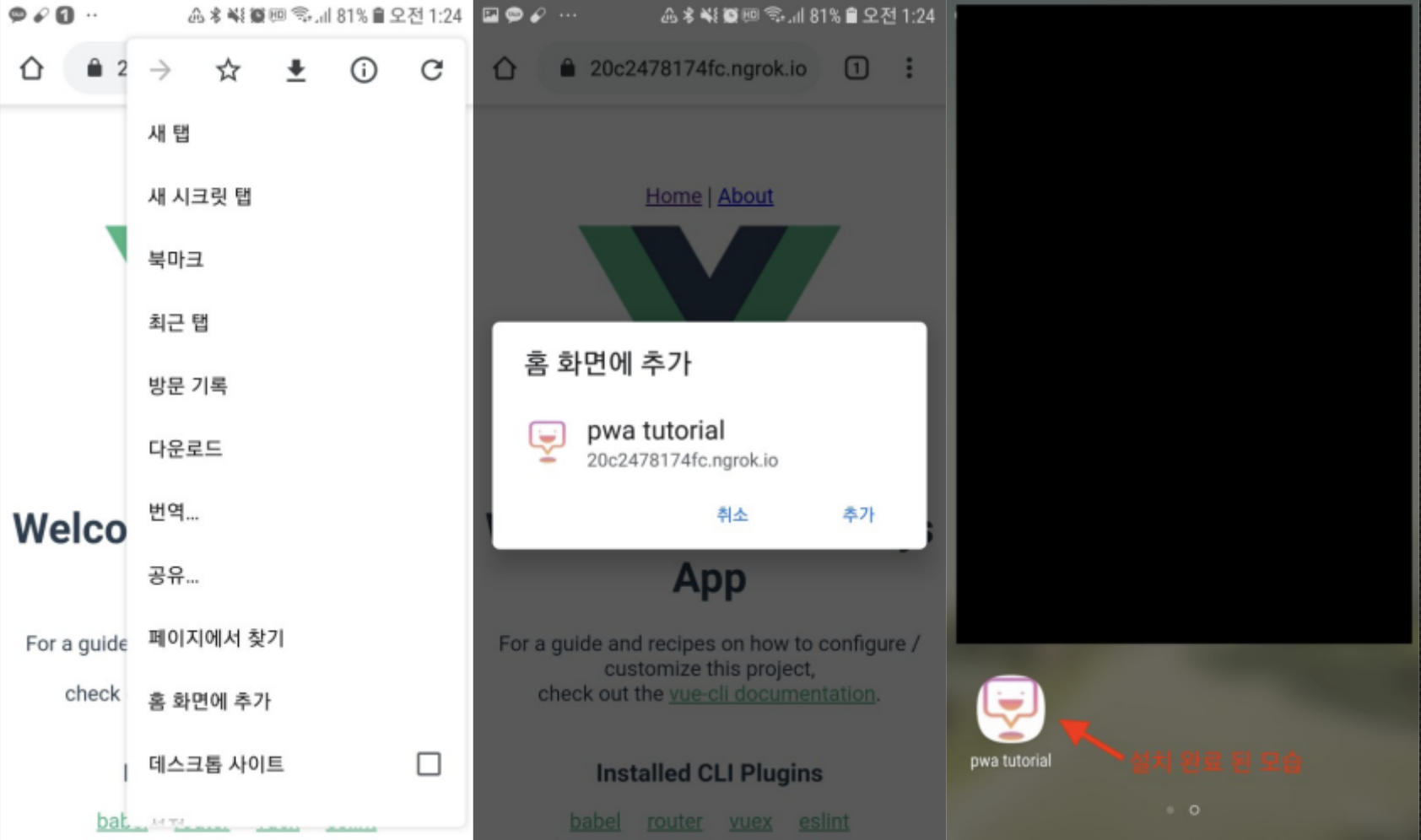 PWA가 가지는 기능적인 장점은 많지만 제가 느꼈을 때 가장 큰 매력은 웹 애플리케이션임에도 play store의 앱처럼 설치 가능하다는 점이 아닌가 합니다.
