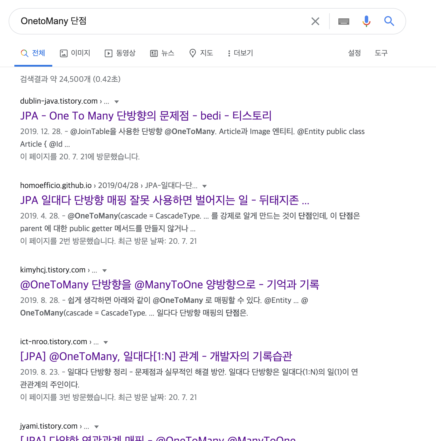 구글에 OneToMany 단점을 검색만 해봐도 많은 자료들이 나옵니다.