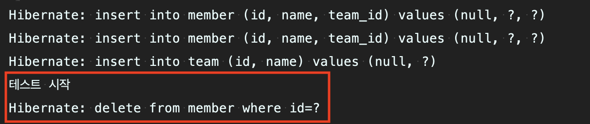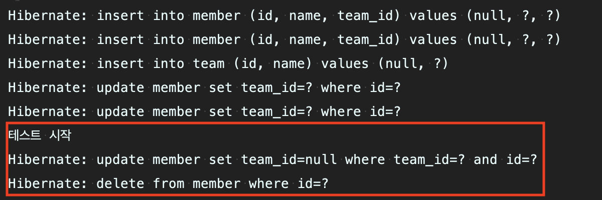 members에서 member를 제거 했으니 해당 member에 team_id를 null로 만드는 update쿼리가 날라가는게 당연하고, memberRepository로 member를 제거했으니 delete 쿼리가 날라가는게 당연하죠.