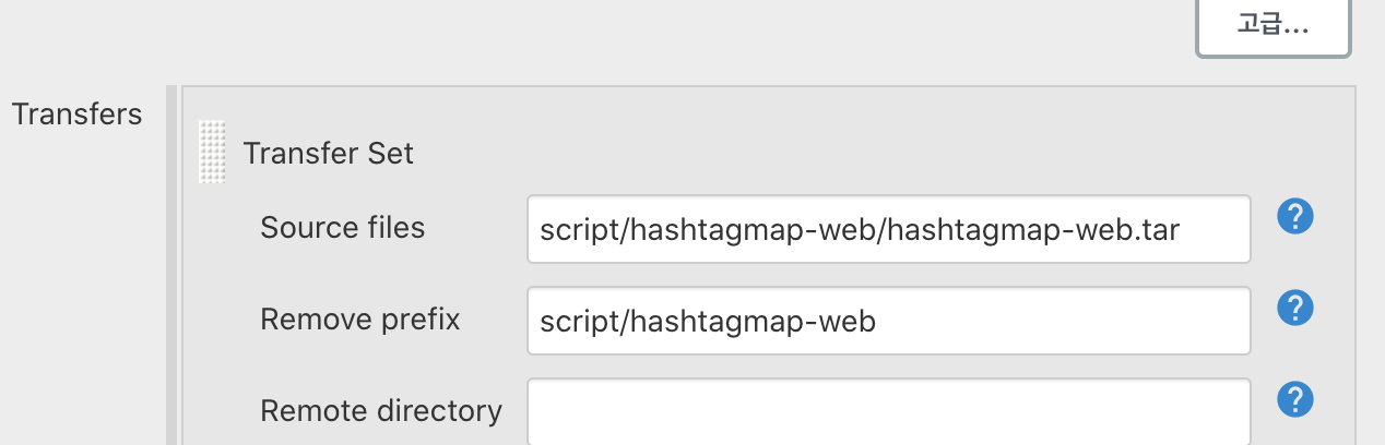 에서 '/var/lib/jenkins/workspace/web'를 워크스페이스로 생각하고 'script/hashtagmap-web/hashtagmap-web.tar'를 source files에 입력해보기로 했습니다.