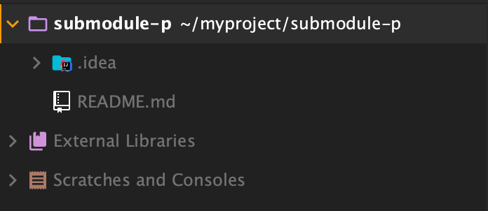 프로젝트의 작업 경로에서 다음 명령어를 이용하여 서브모듈을 생성합니다.