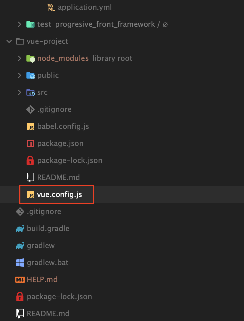 Vue 프로젝트 경로에 vue.config.js 파일을 작성해줍니다.
