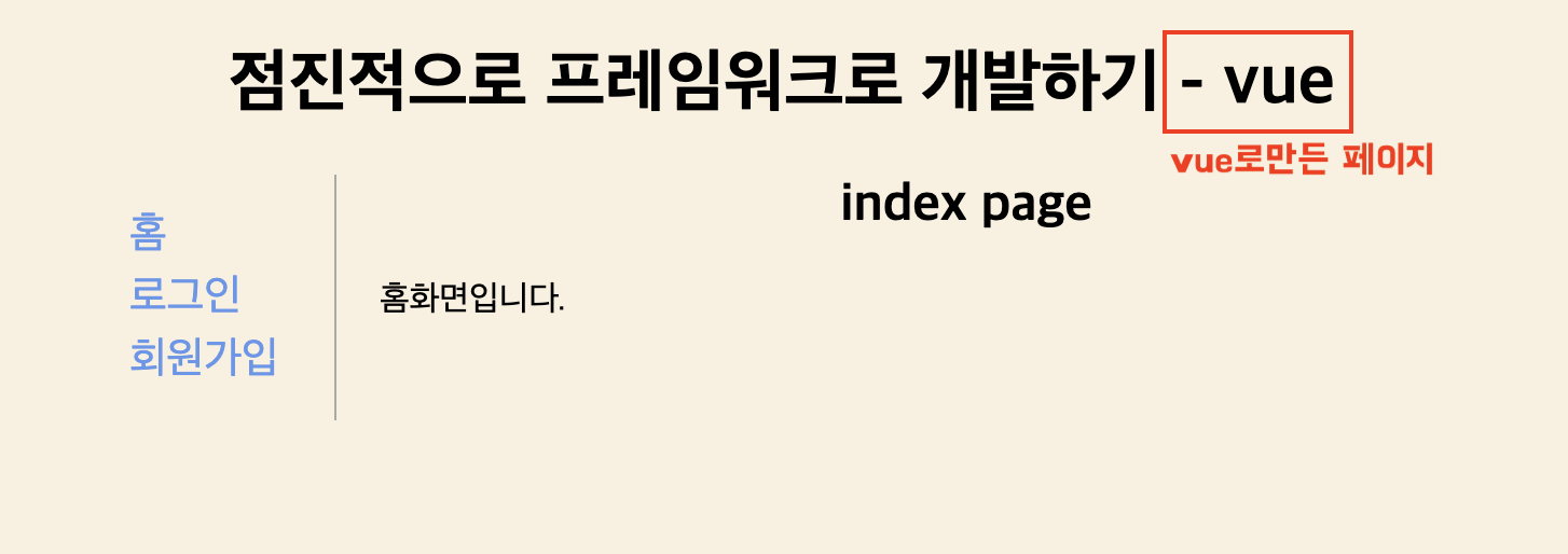 이번 글에서는 'index페이지와 로그인 페이지를 Vue 프로젝트로 바꾸기'로 목표를 설정하겠습니다.